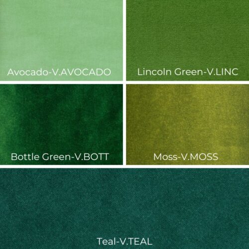 Greens, velvet Lincoln Green and Bottle Green are the most popular greens for Christmas stockings, often with a red cotton lining.
