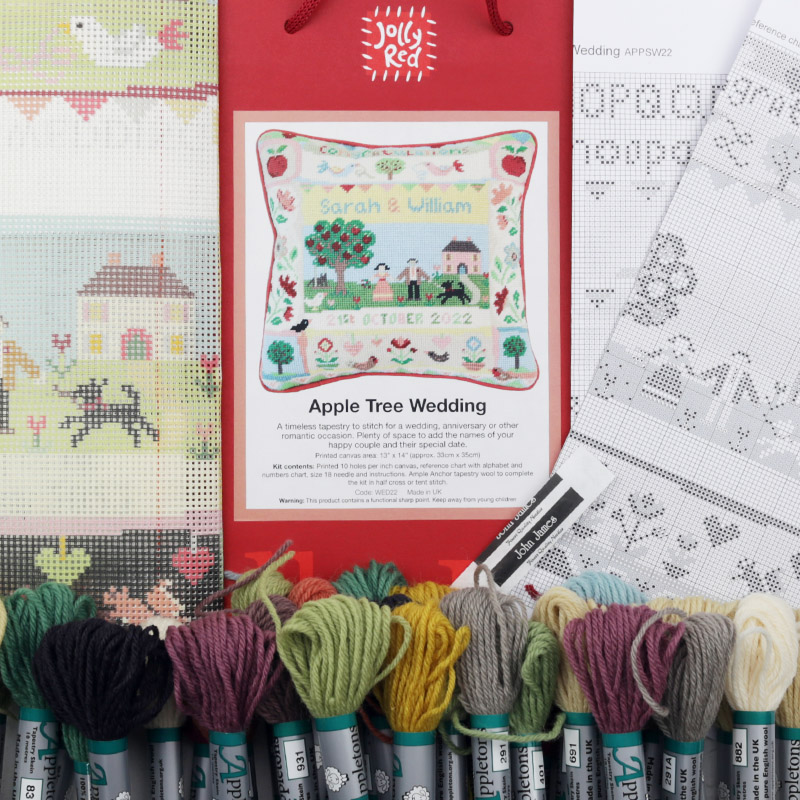 Each Apple Tree Wedding complete tapestry kit comes in a red rope-handled bag with colour illustration and includes: