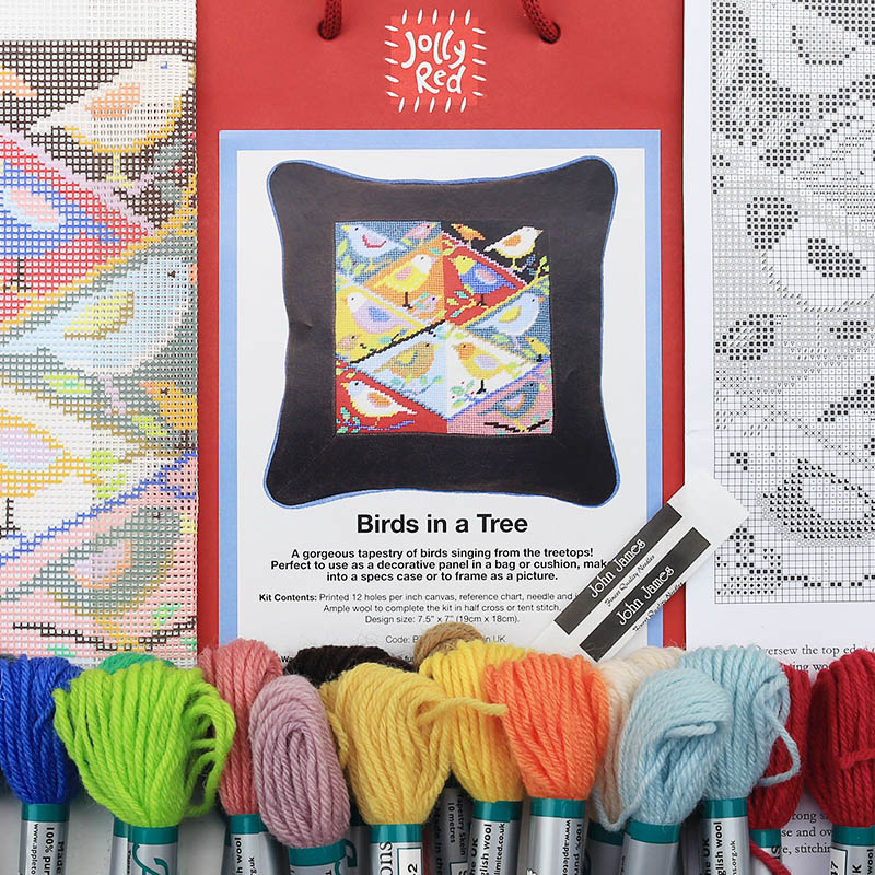Birds in a Tree is a colourful and engaging tapestry kit of birds and little fledglings singing from the treetops. Birds in a Tree is enjoyable to stitch and grows quickly with its patchwork-style blocks.