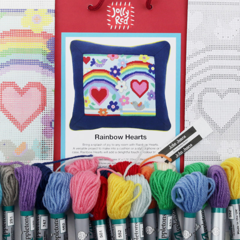Stitch Rainbow Hearts for yourself or as a gift for a friend or a couple. Rainbow Hearts is a versatile design and would make a wonderful wedding cushion, perhaps even a ring pillow. There’s room in the two hearts on the canvas to add initials and we have included an alphabet guide with the reference chart.