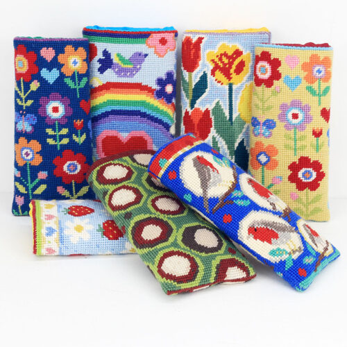Specs cases – £50.00 We can make a small tapestry into a handy case for your reading glasses or sunglasses. Let us know which colour you’d like us to use for the lining. We add wadding between the tapestry and lining but do not include a clasp or other fastening.
